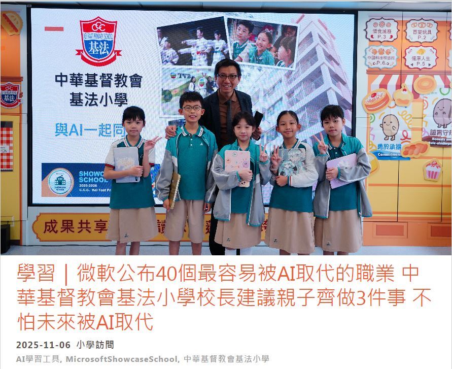 學習|微軟公布40個最容易被AI取代的職業 中華基督教會基法小學校長建議親子齊做3件事 不怕未來被AI取代