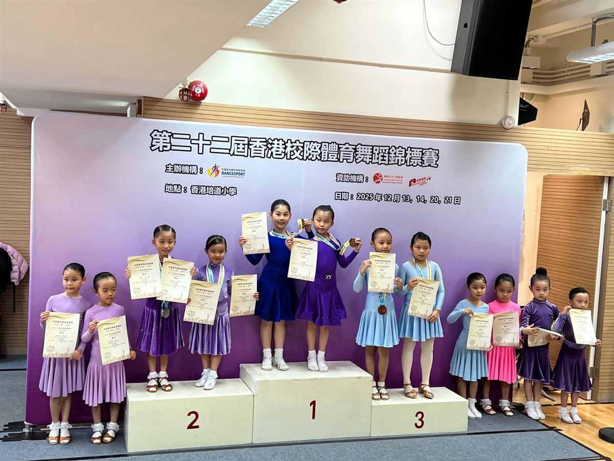 🎉喜訊—第22屆香港校際體育舞蹈章別賽 決賽佳績💃🕺 恭喜本校學生在「第22屆香港校際體育舞蹈章別賽」決賽中勇奪多項殊榮,展現出色舞藝與努力成果👏👏👏: 🥇雙人組(7歲或以下) ・拉丁舞—牛仔舞 第一級章別賽 冠軍 ・拉丁舞—查查查 第一級章別賽 冠軍 ・拉丁舞—倫巴舞 第一級章別賽 冠軍 🥇雙人組(8歲) ・拉丁舞—牛仔舞 第一級章別賽 冠軍 ・拉丁舞—查查查 第一級章別賽 決賽入圍 🥈單人組(7歲或以下) ・拉丁舞—倫巴舞 第一級章別賽 男步 亞軍 🏅雙人組(7歲或以下) ・拉丁舞—查查查 第一級章別賽 分組賽B組 第四名 🏅單人組(7歲或以下) ・拉丁舞—牛仔舞 第一級章別賽 女步 殿軍 孩子們在舞台上閃耀自信,盡展毅力與團隊精神,為校爭光🌟!感謝老師、家長的悉心栽培與支持💖,讓學生在藝術與品格上共同成長! #中華基督教會基法小學 #體育舞蹈佳績 #舞出自信 #家校同行 #全人發展 #第22屆香港校際體育舞蹈章別賽